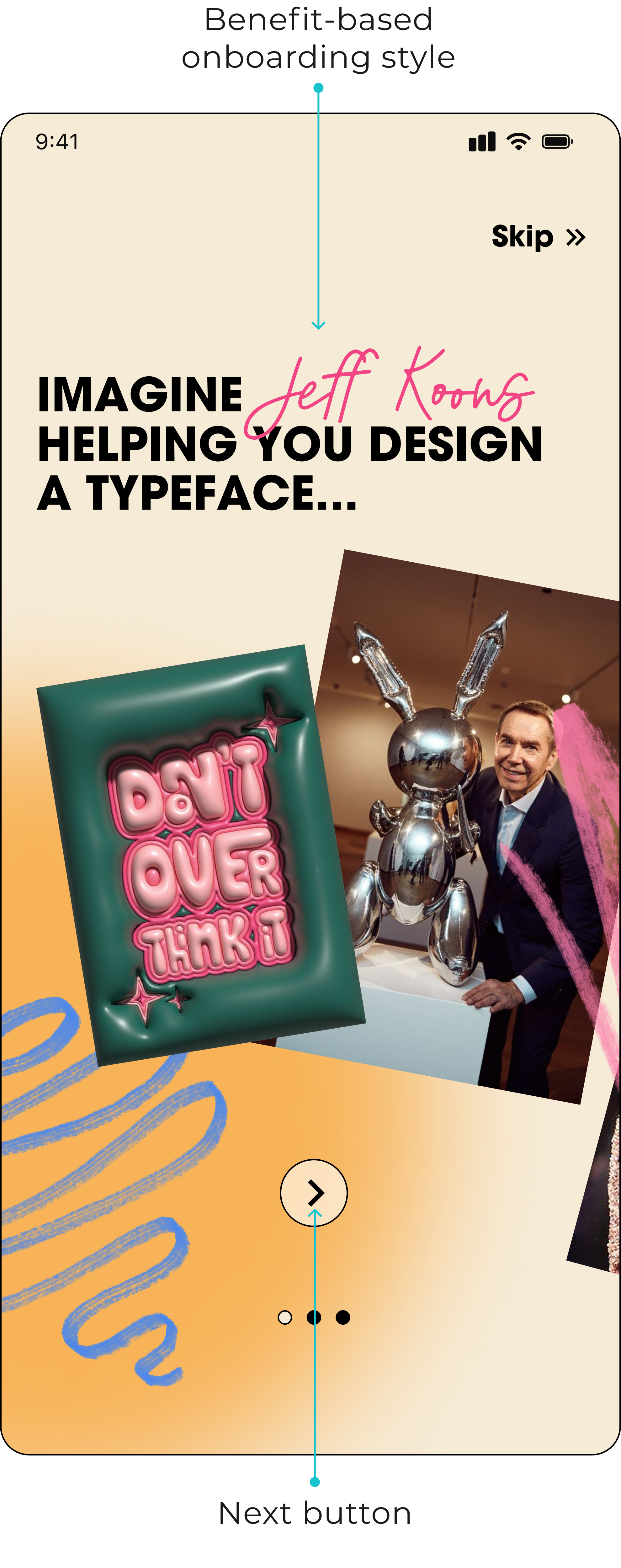 Initially, I was tasked with designing just a "home page," but I quickly realized the importance of adding an onboarding screen(s). To create a compelling user experience, I focused on a benefit-oriented approach, highlighting what users gain from the app. This approach differs from function-oriented or task-oriented ones, which mainly showcase features and tasks.